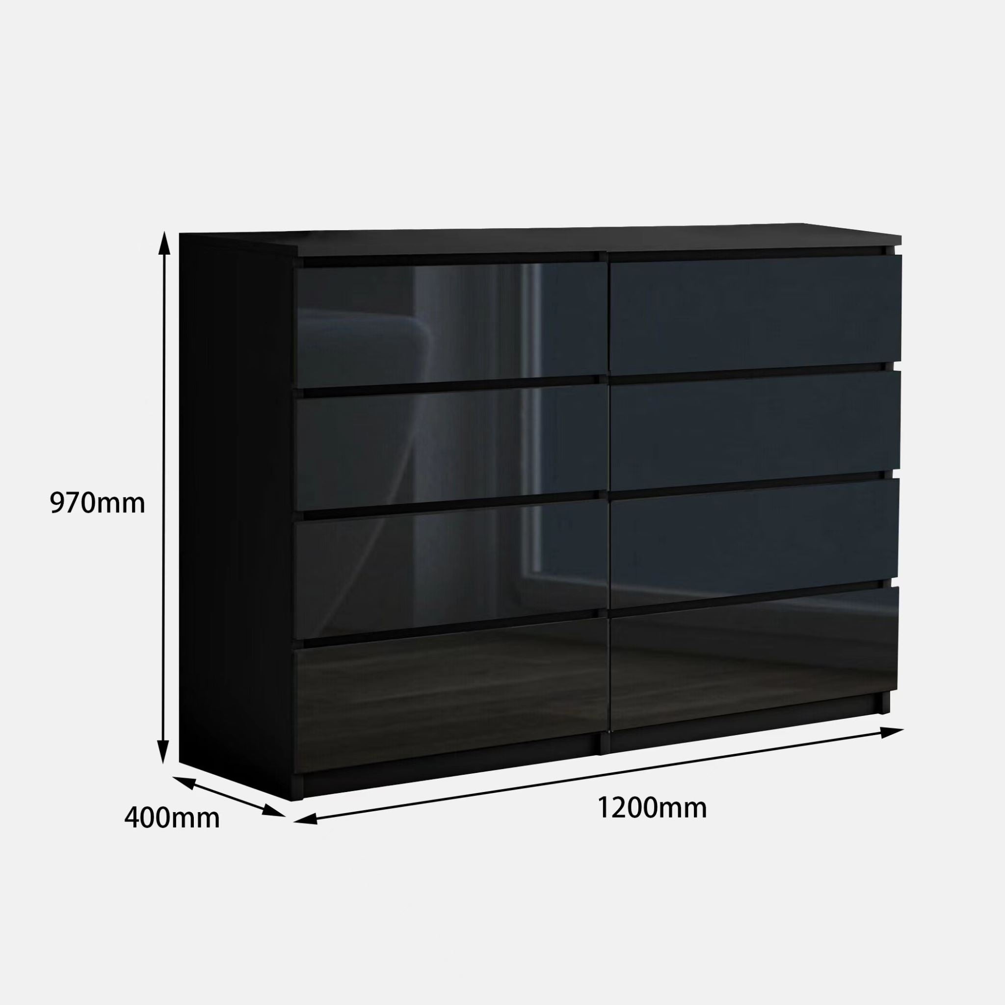 A sleek silhouette and modern design, black gloss 8 drawer chest doesn't sacrifice style or substance.